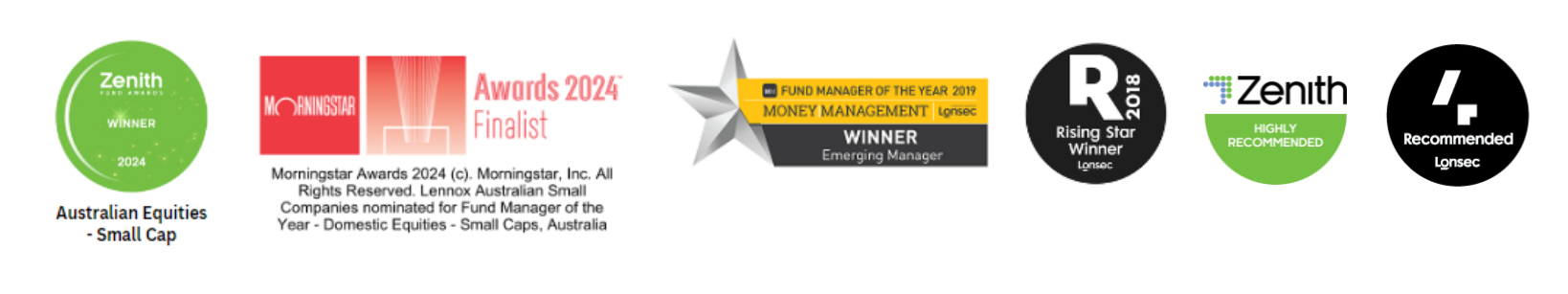 The rating published on 10/2024 for the Lennox Australian Small Companies Fund is issued by Lonsec Research Pty Ltd ABN 11 151 658 561 AFSL 421 445 (Lonsec Research). Ratings are general advice only and have been prepared without taking account of investors’ objectives, financial situation or needs. Consider your personal circumstances, read the product disclosure statement and seek independent financial advice before investing. The rating is not a recommendation to purchase, sell or hold any product. Past performance information is not indicative of future performance. Ratings are subject to change without notice and Lonsec Research assumes no obligation to update. Lonsec Research uses objective criteria and receives a fee from the Fund Manager. Visit lonsec.com.au for ratings information and to access the full report. © 2025 Lonsec. All rights reserved.