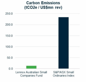 As tangible evidence of the positive impact this approach delivers over time, the Lennox Australian Small Companies Fund has a significantly lower carbon intensity than the benchmark per the following data from Refinitiv/LSEG as at 30th September 2025: